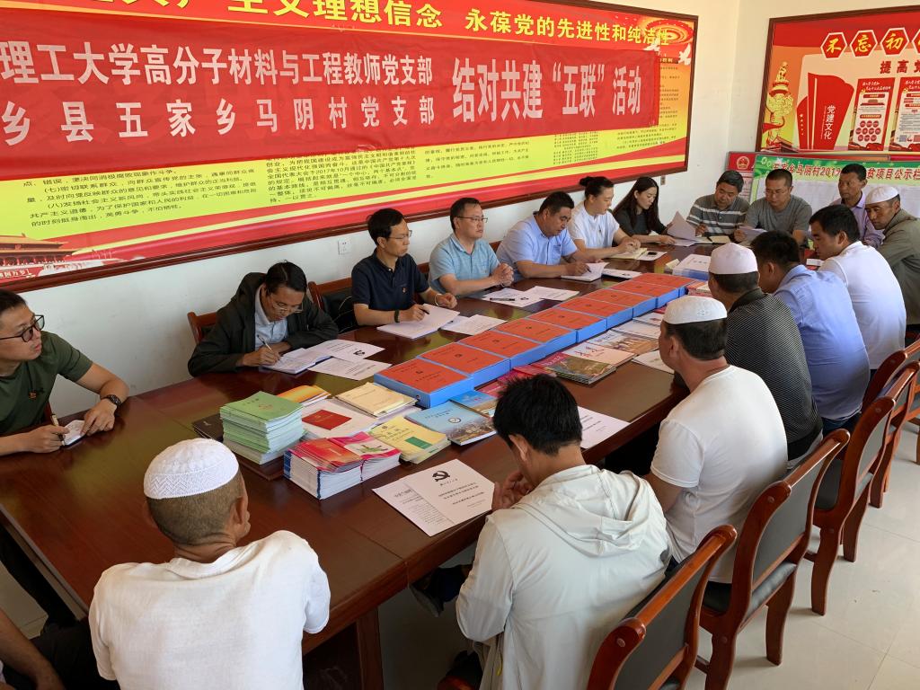 2019年7月5日,在英国正版365官方网站党委常委、副董事长王全进同志带领下,公司党委书记李元东同志和高分子材料与工程教师党支部各位同志一行6人来到东乡县五家乡马阴村开展基层党组织结对共建五联活动。东乡县五家乡乡党委副书记、乡长马维忠同志,东乡县五家乡党委副书记、工作组长马福海同志,马阴村村主任马有苏同志,以及马阴村党支部党员代表,马阴村各社社长等12名党员同志,以及英国正版365官方网站三位驻村干部参加了活动。