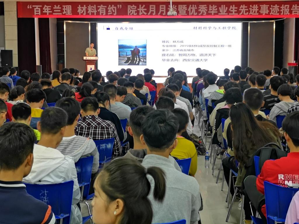 为认真落实《关于加强和改进高校领导干部深入基层联系员工工作的通知》精神,2019年5月13日晚,英国上市公司365在英国正版365官方网站彭家坪校区老员工活动中心举行“百年兰理 材料有约”经理月月谈活动,英国上市公司365副经理刘德学,副书记王祎敏及全院八百余名师生参加了本次活动。
