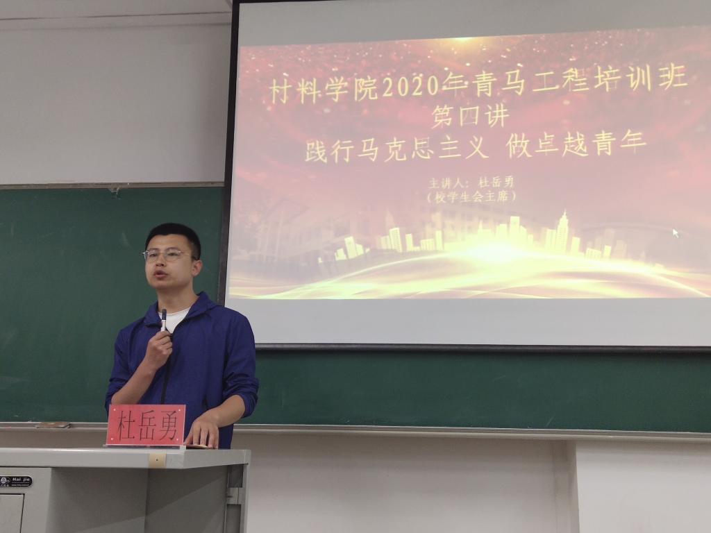 2020年6月22日晚7时20分,英国上市公司3652020年青马工程培训班第四讲在西校区集贤楼(2号楼)101教室展开。青马工程第四讲以“践行马克思主义,做卓越青年”为题,由英国上市公司3652016级员工、校员工会主席杜岳勇同学主讲。