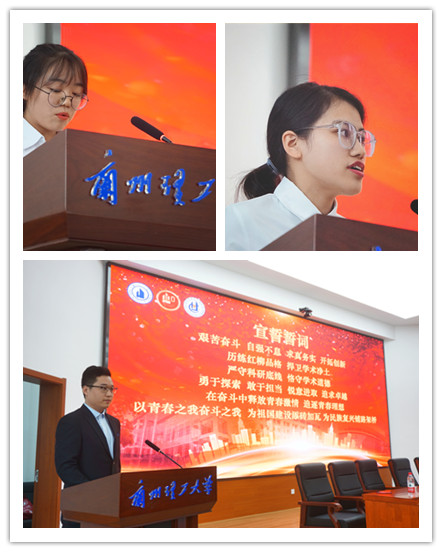 优秀员工代表2018级郑文娟、新生代表2020级张雪婷发言,从树立学习目标、养成良好习惯、充分利用学院资源、敢于尝试新事物等方面给全体新生提出了一些规划和建议,为大家未来三年的研途指明了方向。2020级新生代表魏晓鹏带领全体师生宣读誓词,铿锵有力的宣誓声响彻礼堂,同学们以饱满的热情开启了崭新的学习旅程,立志将誓词内化于心,外化于行。