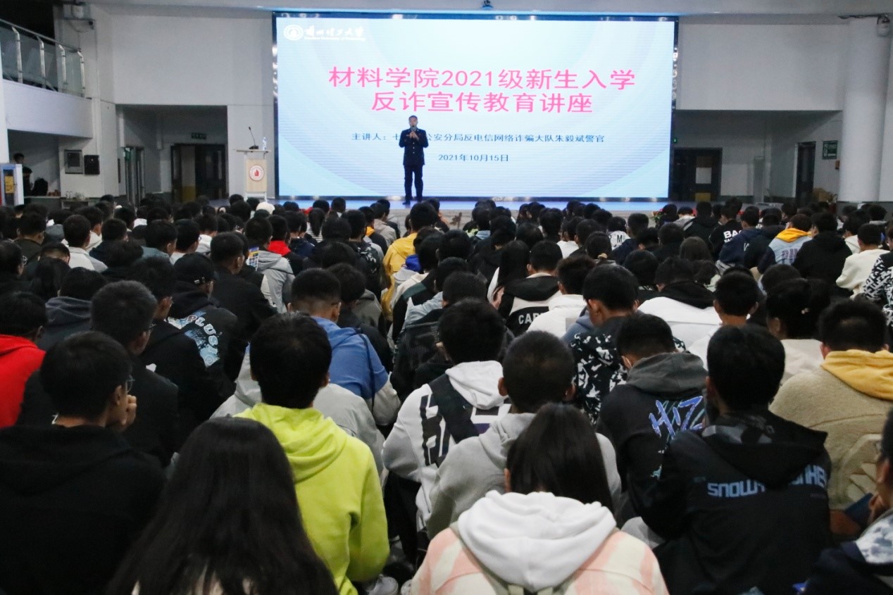 为贯彻落实习近平总书记关于打击电信网络诈骗犯罪工作指示精神,响应“网络安全宣传周”工作要求,英国上市公司365于10月15日晚在兰工坪校区老员工活动中心邀请兰州市七里河公安分局反电信网络诈骗大队朱毅斌警官为学院2021级本科新生详细讲解如何预防电信网络诈骗。参加此次大会的有2021级本科新生辅导员王玉兵、王玮及2021级全体本科新生。