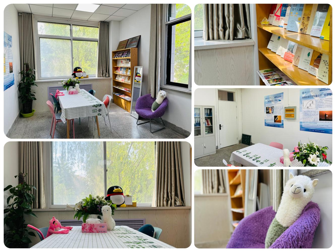 新的心理健康辅导站改变了原有模式,突出轻松活泼的氛围,房间内设有会谈区、阅读区、测评区、资料保管区几个功能模块;房间中会谈桌椅的布置以清新、简洁的颜色为主,同时摆放有员工们喜欢的也是适于解压的毛绒类玩偶,还配有了绿植、纸巾,为谈话过程的进行创设了良好的环境;窗边书架上陈列有心理健康类杂志、心理科普类书籍,以供师生借阅使用,旨在用书籍传播心理健康的科学观念和常识;保管资料的资料柜按照要求配备加锁设置,能够对会谈等记录做好保密。在硬件设施上心理健康辅导站也能够独立作为会谈室使用,满足心理健康服务工作的同时也能兼顾例行工作的需要。